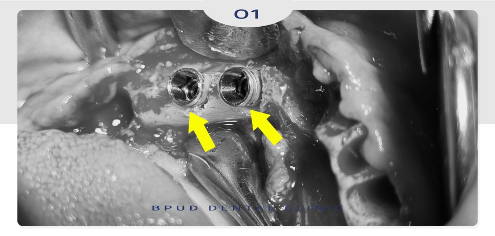 수술 진행을 위해 잇몸을 열었을 때