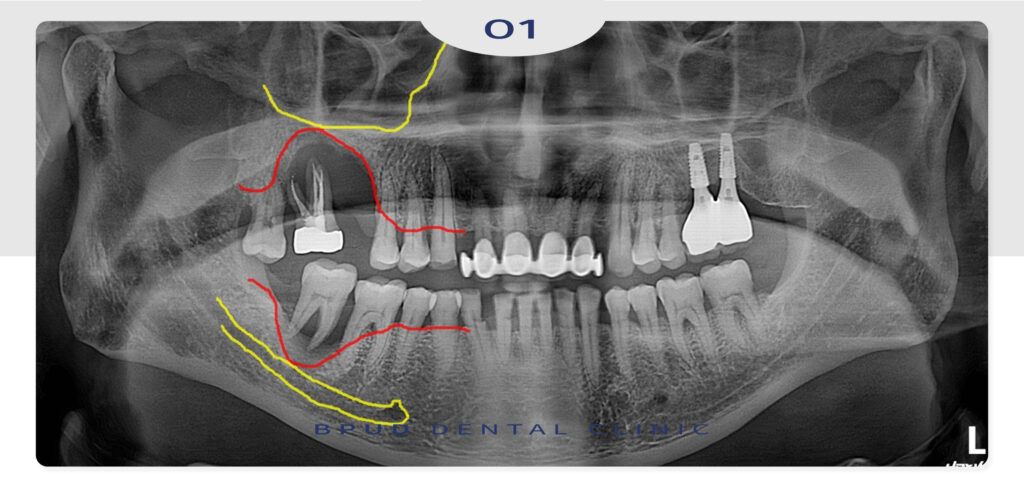 원인 치아들을 발치하고 위쪽은 상악동 거상술,