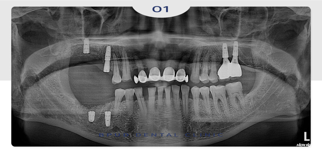 아래쪽에는 뼈이식을 통해 임플란트 식립을