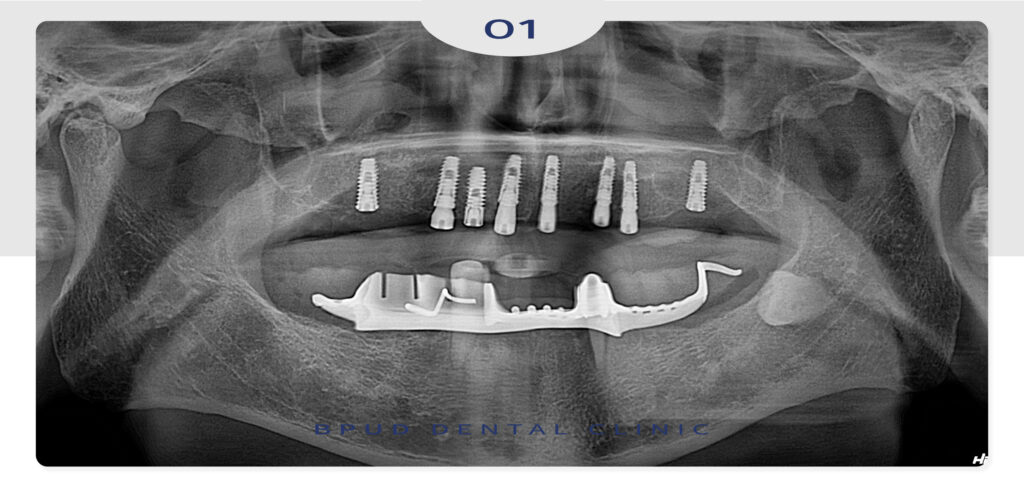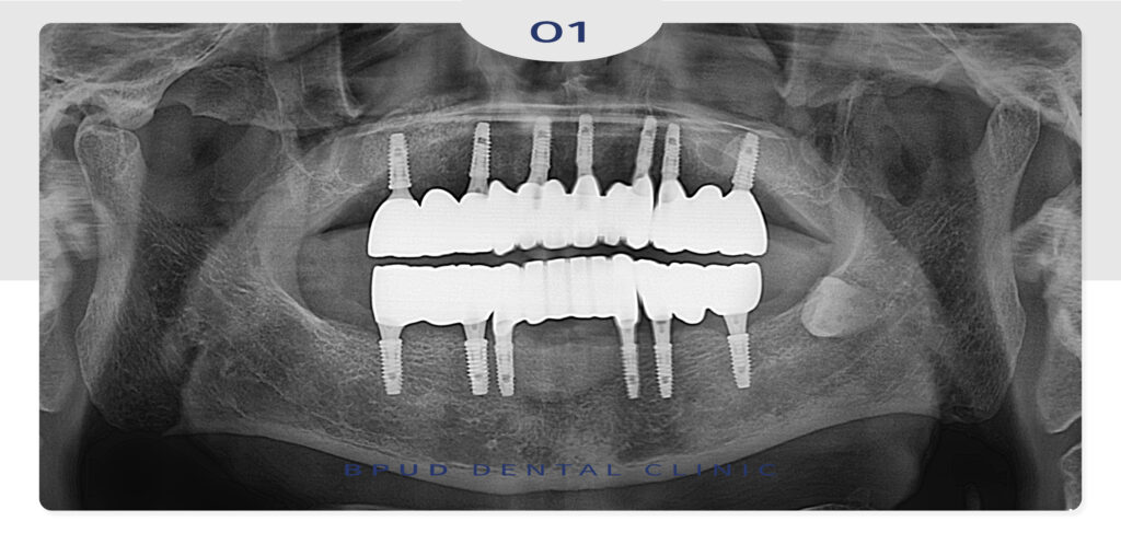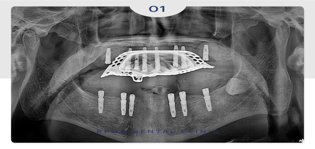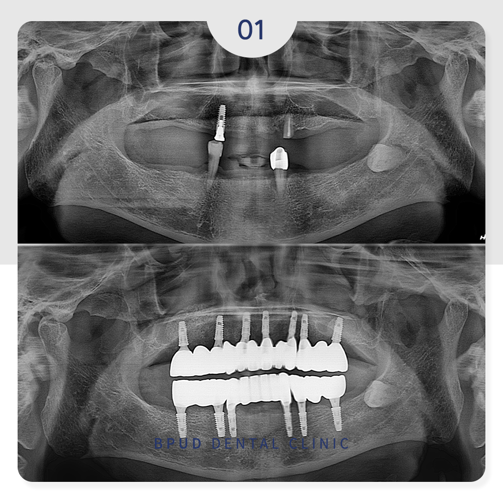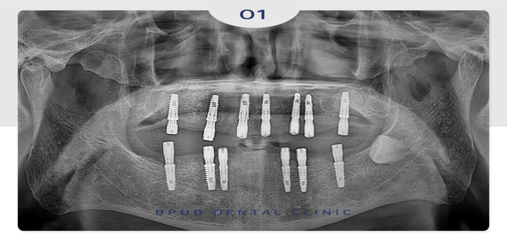 위쪽 7개, 아래쪽 6개 임플란트 식립을 진행하여